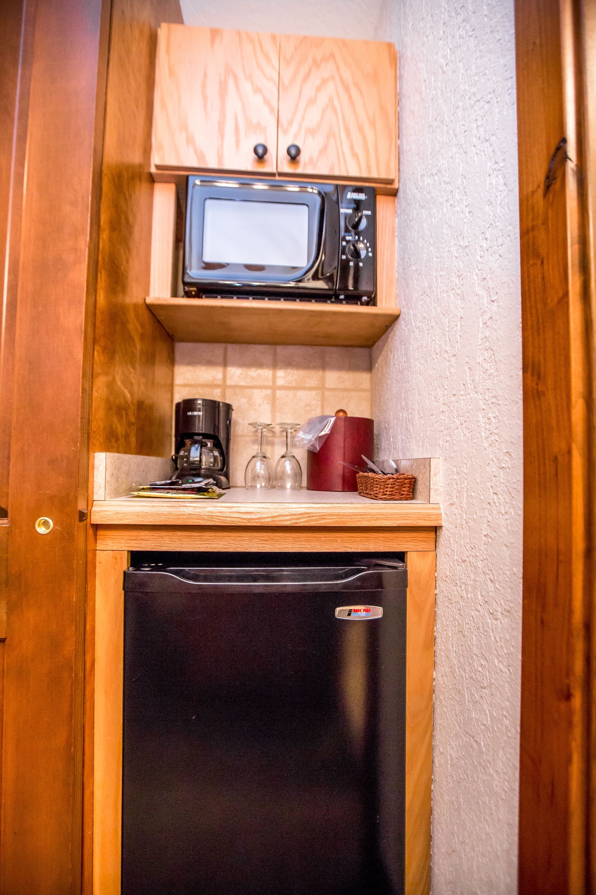 Complimentary drip coffee in kitchenette rooms only. Served in lobby all day